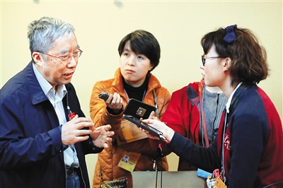 3月4日,全国政协委员余永定(左一)接受记者采访时说,应加强外汇储备的安全性。 新华社记者 张玉薇 摄