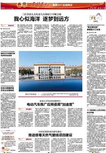 | 海南日报 逐梦春天聚焦2017全国两会 003 2017-03-061 2017年03月06日 星期一 |