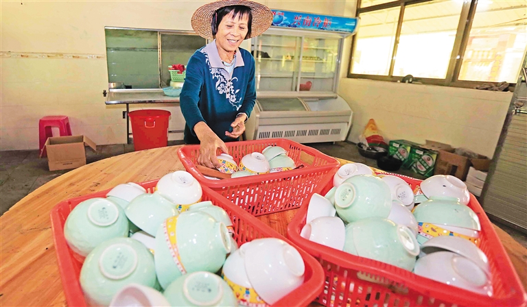 3月6日,在屯昌县新兴镇沙田村,贫困户王美花正在收拾自家经营的农家乐。据介绍,这家农家乐是当地政府为村里筹建的,目前由王美花一家承包经营。节假日期间,来沙田村旅游的游客给农家乐带来不少客源。