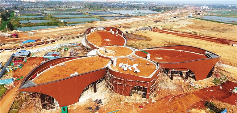 我省调精调优农业结构,打造高效农业示范样板。图为3月1日,海口桂林洋国家热带农业公园公共服务中心建设现场。目前该项目主体结构已完工,开始进入室内装修阶段。