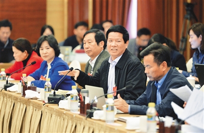 热议 3月5日,海南代表团在住地举行全体会议,审议李克强总理所作的政府工作报告。 本报特派记者 王凯 摄
