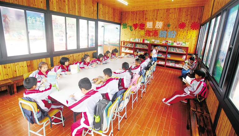 据了解,为了进一步加强校园安全防范,该校设立了“爱心书屋”。这个不足60平方米的书屋不仅让放学的学生等待不再枯燥,也给学生们营造了一个安全的校园环境,深受家长好评。本报记者 张茂 摄