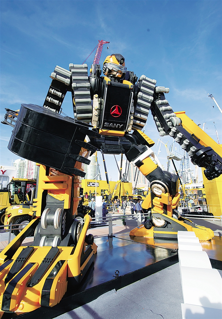这是3月7日在美国拉斯维加斯工程机械展上拍摄的中国三一重工展出的“变形金刚”模型。 美国拉斯维加斯工程机械展7日开幕,全球超过2500家企业参展,中国工程机械领军企业集体亮相成为展会亮点。新华社记者 杨磊 摄