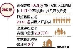 2016年,我省举全省之力抓扶贫工作,脱贫攻坚首战告捷。今年,我省要确保完成年度18.3万农村贫困人口脱贫和117个整村推进扶贫开发任务;抓好垦区农场7141名贫困人口脱贫,改造建档立卡贫困户危房2.3万户,实施易地扶贫搬迁村5个,落实建档立卡贫困人口“两不愁、三保障”政策。