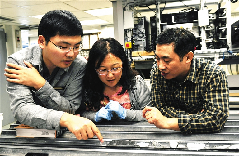据中科院南海海洋研究所张锦昌介绍,“测井”主要是对钻孔的岩层声学速度、密度、天然伽马放射性、电阻率等岩石物理性质,进行原位测量,以获得连续完整的科学数据,与钻取的岩芯数据相互补充。同时,还对钻孔井壁进行了扫描,获取了钻穿的各套岩层的高精度原位图像,以进一步加深对钻孔岩石原貌、岩层接触关系、构造特征等认识。