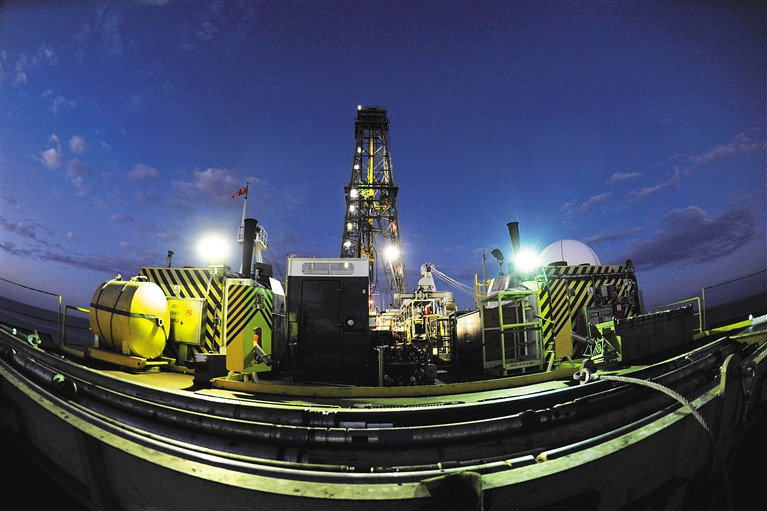 2月26日,“决心”号在北纬18度24.5分、东经115度51.6分的U1499B孔内,插入了一根“探海神针”进行钻探。