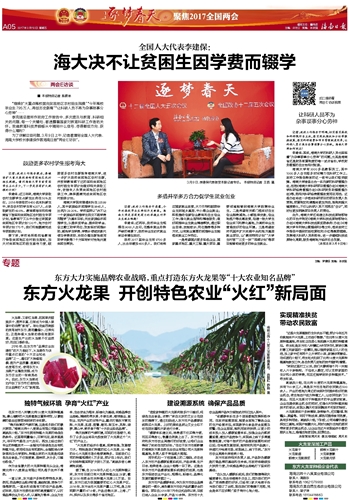 “溯源体系建立后,消费者不仅买得方便,而且买得放心,销量自然就上去了。东方市政府和东方市农业局推行的好政策,让咱们企业得到了实实在在的好处。”在位于东方市板桥镇的海南东方果自然生态农业有限公司火龙果种植基地,负责人梁子坤竖起大拇指。