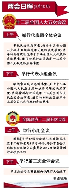 继续审议民法总则草案、关于十三届全国人大代表名额和选举问题的决定草案、香港特别行政区选举十三届全国人大代表的办法草案、澳门特别行政区选举十三届全国人大代表的办法草案