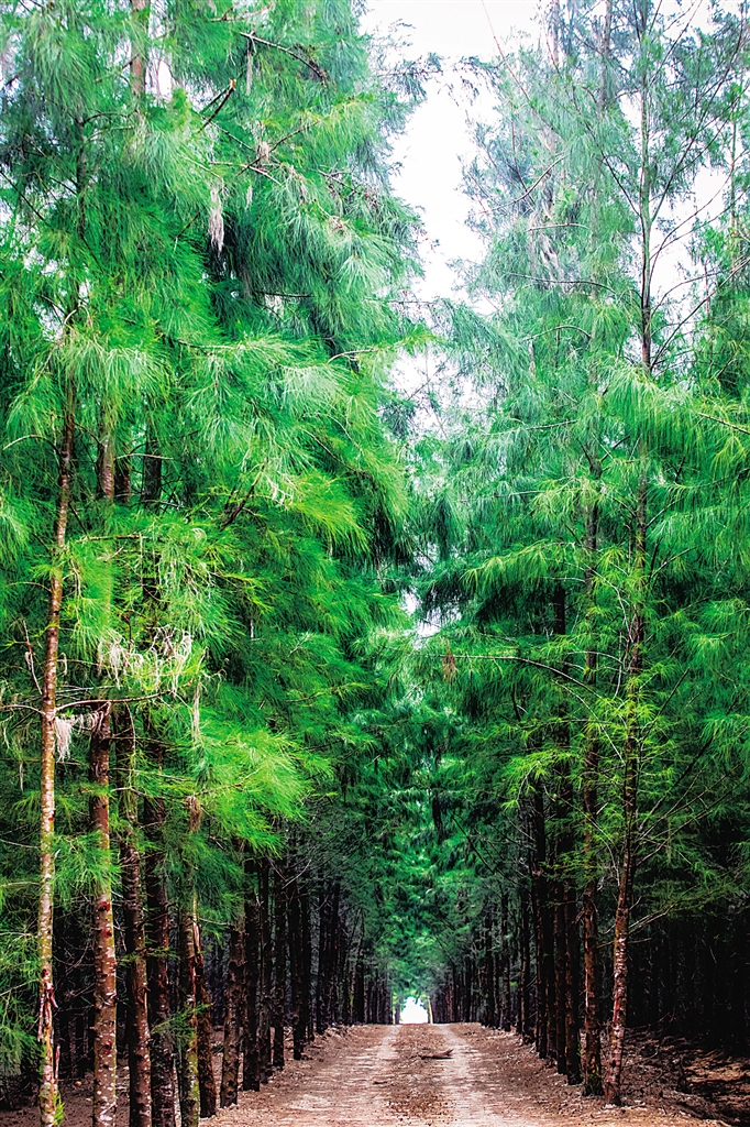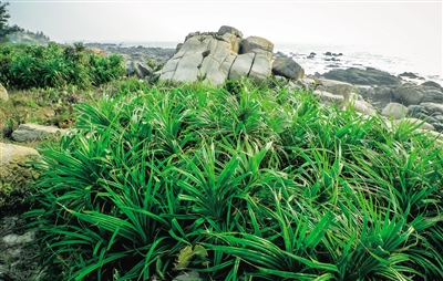 棋子湾的绿化成功,离不开一种名为“露蔸树”的海漂植物。露蔸俗称野菠萝,耐干旱、根系发达,植株高大且可截干栽植,在昌江沿海十分常见,农民常用作田地四周的防沙篱笆。1996年,专家们制定了一个稳妥的两步走策略,先营造防风固沙植物带,再在其保护下造林。对固沙植物的选择费尽心思,专家们通过比选国内外耐旱植物和实地考察,最终选定了露蔸,作为造林的先锋树种。
