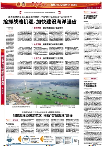 | 海南日报 逐梦春天聚焦2017全国两会·直通车 003 2017-03-131 2017年03月13日 星期一 |