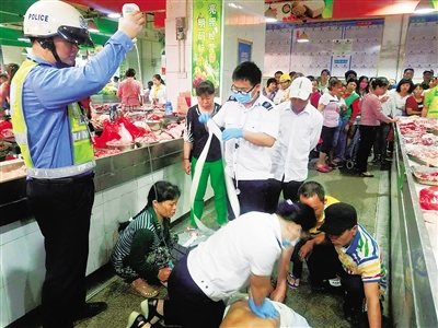 上午7时许,海口市公安局交警支队琼山大队三中队协警孙翔在海口丁村市场路段管理交通秩序时,接到一名群众求助称:在丁村市场内有人晕倒。接到求助后,孙翔赶紧跑到市场内查看情况,发现一名中年男子躺在地上且失去意识,孙翔见状立即拨打120急救电话求助。随后,医护人员到达现场,先行给该男子输液抢救。但此时医护人员遇到了麻烦——现场没有输液杆。