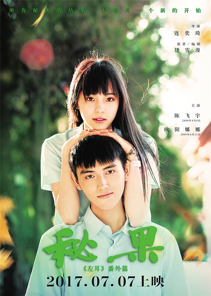海南院线业内人士告诉记者,《秘果》根据著名作家饶雪漫的原著改编,饶雪漫自任编剧,这也是饶雪漫继将自己小说《左耳》成功改编成同名青春电影后,再次担任电影编剧。《秘果》作为《左耳》的番外篇,预计将吸引大量书迷和影迷关注。书中敏感帅气的段柏文和元气少女于池子,在两位“00后”少男少女扮演下,将与原著中17岁少年们的青春故事更完美地契合。