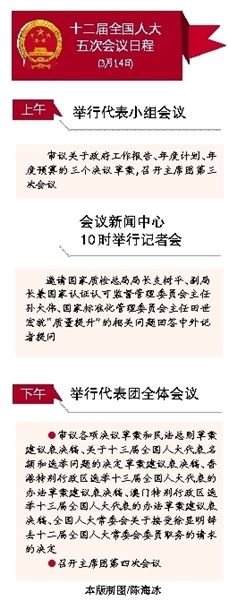 ●审议各项决议草案和民法总则草案建议表决稿、关于十三届全国人大代表名额和选举问题的决定草案建议表决稿、香港特别行政区选举十三届全国人大代表的办法草案建议表决稿、澳门特别行政区选举十三届全国人大代表的办法草案建议表决稿、全国人大常委会关于接受徐显明辞去十二届全国人大常委会委员职务的请求的决定