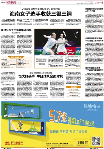 海南日报 体育新闻综合 008 2017-03-141 2017年03月14日 星期二