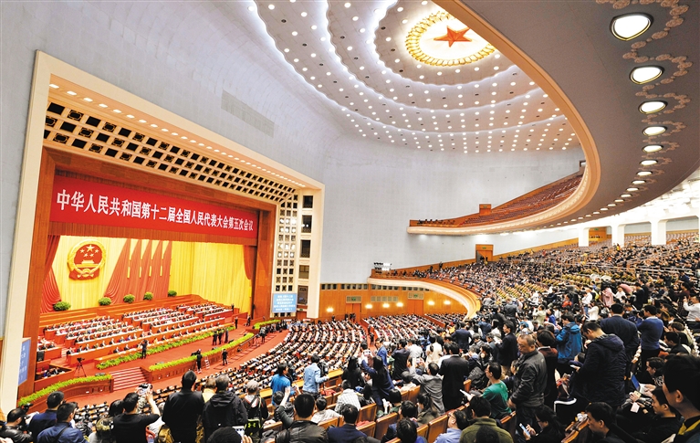 9时51分,张德江宣布:中华人民共和国第十二届全国人民代表大会第五次会议闭幕。大会在雄壮的国歌声中结束。