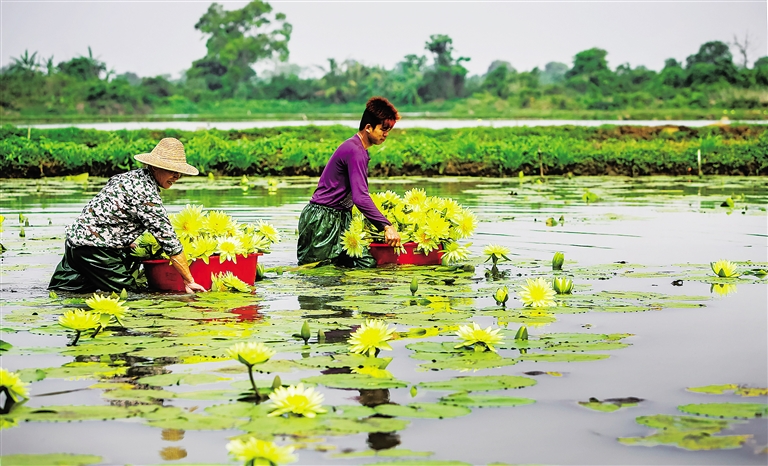 据介绍,该合作社于2013年成立,23名社员以股份入社,其中有两户贫困户。2014年从福建引进台湾品种九品莲花试种获得成功,至今已发展至45亩水面,年产鲜花100万朵。大美富硒香水莲花茶及鲜花茶,销往北京、上海等地。去年实现盈利93万元,社员每户平均分得红利2.8万元。今年计划扩种莲花至500亩,吸收更多村民入社共同致富。