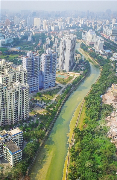 “美舍河上游汇水面积大,造成下泻的客水流量大。雨季、台风时,不得不提防薄弱环节。”海口市水务局局长陈超说。