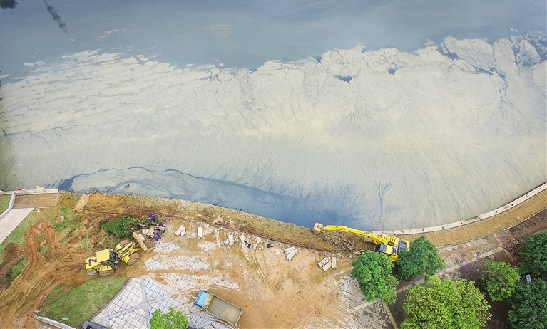 未能进入排水管道的污水无处可去,只能溢流进河水,河水的底泥越积越多。