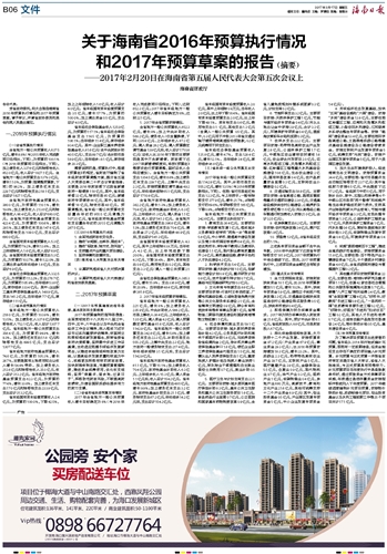 关于海南省2016年预算执行情况 和2017年预算草案的报告(摘要)