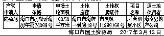 根据海南省人大常委会《关于加快积压房地产产权确认工作的决定》,现将海口市国土资源局对下述积压房地产土地确权登记申请的审核情况予以公布(详见下表)。对公布的土地使用权、所有权及他项权利有异议者,请于见报之日起60日内,以书面形式并持有关证据到海口市国土资源局美兰分局(海口市群上路1号)办理异议登记或复查手续。逾期没有提出异议的,即认为公布的权益无异议。联系人:夏女士 联系电话:0898-65361223