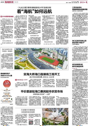 海南日报 海南新闻综合 003 2017-03-181 2017年03月18日 星期六