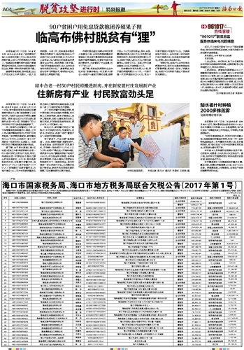 海口市国家税务局、海口市地方税务局联合欠税公告(2017年第1号)