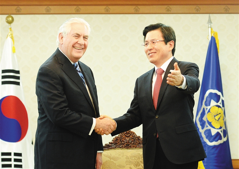 蒂勒森在日本发出了“一切选项都在桌上”的表态后,在韩国再次重复了这句话。这一表态被舆论解读为暗示美国不排除对朝鲜动武的可能。