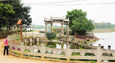 如今,这块“内史王公里”石碑仍然被完好地保存在村口,坐落在莲池的正对面。村民们在石碑周边修起了围栏以进行保护。入村的游客,大多会伫立于此,摸一摸亘古石碑,望一望静美莲池,在幽幽莲香中感受内史公的廉洁故事。