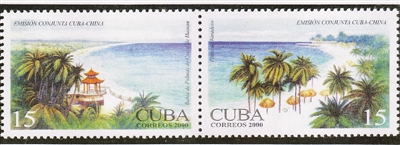 2000年9月26日,中国与古巴联合发行《海滨风光》邮票,其中15C一枚为“海南椰林湾”。