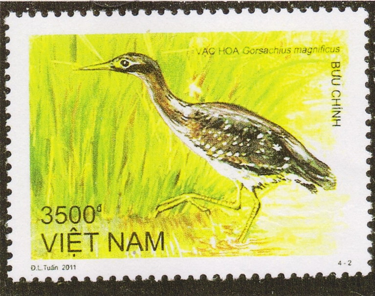 2011年5月15日,越南发行《巴贝国家公园动物》邮票一套,其中面值3500盾一枚为“海南夜鳽”,海南夜鳽又名海南虎斑鳽,栖息于高山的山沟河谷或其它水域附近,昼伏夜出,早晚觅食,以蛙类、小鱼和昆虫为食物。海南夜鳽数量稀少,在生物学上极具研究价值。