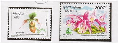 1998年1月1日越南发行《海南兜兰》邮票,其中面值400d一枚为“卷萼兜兰”。