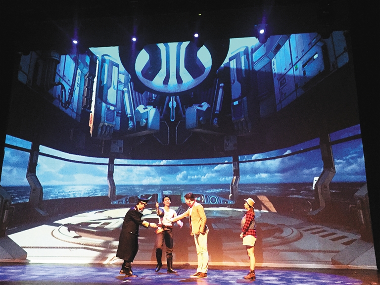 该剧改编自有着“科幻小说之父”美誉的法国著名作家儒勒·凡尔纳的海洋三部曲中最著名的同名小说。在昨晚上演的剧中,作家凡尔纳也被改编成了剧中人物站在舞台上,他完成了带着现场观众去探寻海底世界的任务。全剧主要描述为了抓捕世界上最后一头蓝鲸,凡尔纳和他的科学助理康塞尔、鱼叉手尼德开启远征航程。凡尔纳无意间触发一个机关,解冻了300年前的尼莫船长,科学三人组乘坐尼莫的潜艇鹦鹉螺号,在广袤的海底世界里潜行了两万里,由此揭秘了诸多科学谜团。数百人的看戏现场,孩子们常常被剧中的笑点触发,现场多次响起欢乐的笑声和掌声。剧中精彩的海洋科普知识和环保理念,也引发了观众的深思。