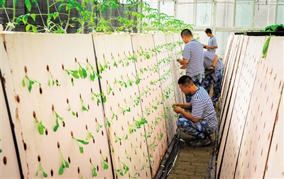 在永兴岛、琛航岛、东岛等岛礁蔬菜生产基地,种菜不用泥土,只需把蔬菜种子置入特制的塑料泡沫里,放进营养液里培育;绞碎的椰糠和沙混合,配上肥料培育改良后,种植的辣椒、黄瓜两个月就可以采摘。