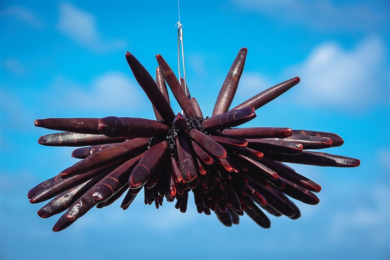 石笔海胆大棘一般为深浅不均匀的浅褐色或灰褐色,也有灰色或黑紫色,末端常有1-3条浅色环带,口面的大棘末端常为红色。中棘为白色、褐色或紫黑色。栖息于沿岸珊瑚礁洞穴内,有时在水深20米处也能发现,4月间产卵。(本报记者 刘操 整理)