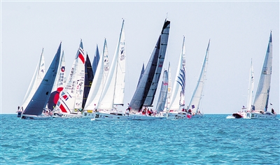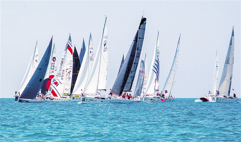 19支船队昨天上午10时从三亚半山半岛港出发,沿西海岸向海口航行,总里程约280海里。目前,领先的友宝号、海口号和三亚号已经航行了近220海里。今年的全环比赛竞争得比较激烈,航行在前8名的船队相差的海里数不多,友宝号和海口号一直保持2海里的差距。