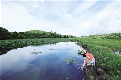 在距离海口不远的定安,沿着S214省道驾车往龙门方向行驶约40分钟便来到红花冷泉湖农庄。依托于潺潺不止的冷泉,农庄上百亩的冷泉湖面呈自然圆弧型,湖面四周被树林包围,波光粼粼,徐徐微风舒适惬意。在农庄向导的指引下,找到冷泉出水眼,就会看到令人称奇的景观:泉水清澈见底,一米多深的水下可见鱼儿畅游的身姿。