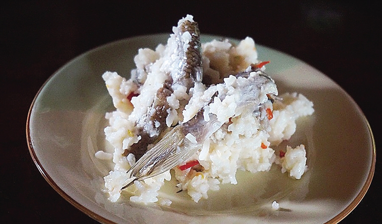 聊起鱼茶的做法,主厨的黎族阿姐说,当地村民把上好的生鱼片与高山熟稻米混放入罐子中,加上调料,经过近10天的密封,食材在瓶中自然发酵。鱼茶可制成干茶和湿茶两种,也可如法炮制成肉茶、蛋茶等。据了解,鱼茶具有丰富的氨基酸和蛋白质等40多种元素,发酵的时间越长味道愈加浓郁。