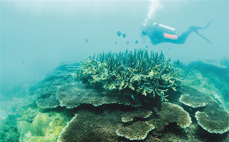 眼之所见更为喜人。“直观来说,就是变多变大,”童国强说,“原来码头石桩是没有珊瑚的,现在都长了。如今在岸上都能窥见水下的珊瑚。有的珊瑚长得比八仙桌还大。” 他介绍,如今,凭借美丽的珊瑚礁生态,景区还吸引了众多岛外乃至国外专业潜水爱好者来体验潜水。