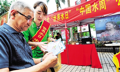 3月22日是世界水日。上午,海口市水务集团组织员工和志愿者,在明珠广场、时代广场以及各大小区摆摊设点,开展以“倡导绿色生活、呵护生命源泉”为主题的宣传活动。