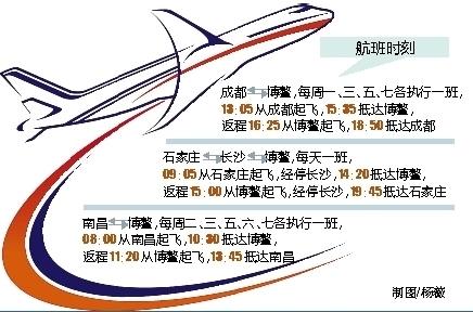 本报嘉积3月22日电(记者邵长春 通讯员覃朝春)随着博鳌亚洲论坛2017年年会的临近,博鳌机场再次成为社会各界关注的焦点。据悉,此次年会结束后,博鳌机场将启用新的夏秋季航班计划。为方便广大旅客出行,换季后,将由成都航空、河北航空、东方航空继续执行博鳌至成都、石家庄、南昌的航线航班,同时增加了博鳌至长沙的航线航班,其他国内主要城市航线也将陆续开通。