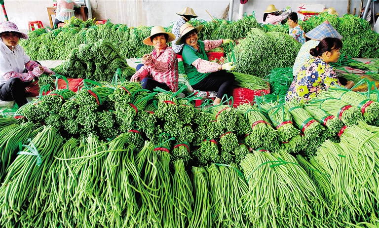 据县蔬菜协会秘书长许泉介绍,目前该县每天2000多吨豇豆发往全国各地,每市斤收购价2.5元左右。去年全县种植面积为3.4万亩,今年又增加了2000亩。本报记者 苏晓杰 特约记者 陈超 通讯员 王家专 摄