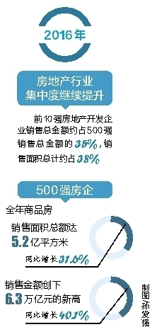 2016年,房地产行业集中度继续提升。从本次500强测评结果看,10强房地产开发企业销售总金额约占500强销售总金额的35%,销售面积总计约占38%。前50强、100强、200强企业销售金额分别约占500强总销售金额的60%、70%和90%。资源加速向500强为代表的领先企业聚集。