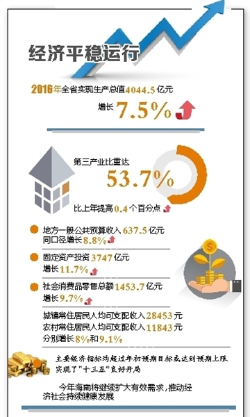数据显示,2016年海南接待游客6023.6万人次,旅游总收入672.1亿元,分别增长12.9%和17.4%;入境游客和旅游外汇收入分别增长23.1%和41.3%,入境游连续多年下降势头得到扭转。