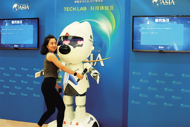 3月23日,博鳌亚洲论坛2017年年会现场,智能机器人、VR体验等高科技产品纷纷亮相,而海南本土特色的美食及民族风也成为现场一道道亮丽风景线。