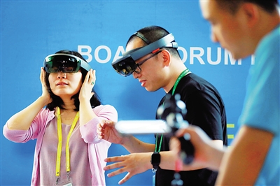 VR设备让与会者全方位感受科技带来的变化。本报记者 张杰 摄