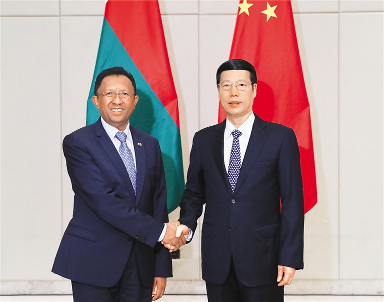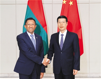 3月24日,中共中央政治局常委、国务院副总理张高丽在海南博鳌会见马达加斯加总统埃里。 新华社记者 谢环驰 摄