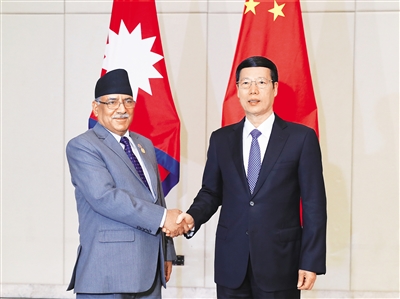 3月24日,中共中央政治局常委、国务院副总理张高丽在海南博鳌会见尼泊尔总理普拉昌达。 新华社记者 谢环驰 摄