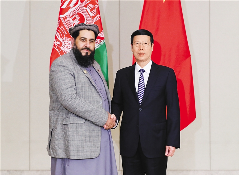 3月24日,中共中央政治局常委、国务院副总理张高丽在海南博鳌会见阿富汗议会长老院主席穆斯利姆亚尔。 新华社记者 谢环驰 摄