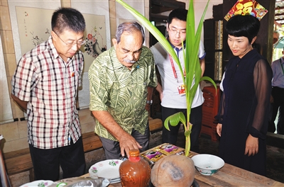 在中国驻密克罗尼西亚联邦大使李杰等陪同下,彼得·克里斯琴一行走进开放式的传统民居建筑“北仍客厅”,欣赏村民练习书法,观看村民表演的琼剧,并同村民们互致问候、亲切交谈。