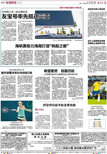 海南日报 体育新闻综合 012 2017-03-251 2017年03月25日 星期六